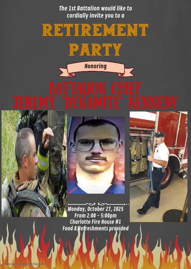 Drop In (Captain James Stikeleather and Engineer George Alexander) & CFD News ( Station T-Shirts Sales)October 3, 2025CFRS News (November Holidays, Pay dates, Monthly meetings, and New retirees )November 4, 2025 CFD News (2025 Award Ceremony) & Drop In (Battalion Chief Jeremy Kennedy) October 7, 2025 Related postsNovember 4, 2025CFRS News (November Holidays, Pay dates, Monthly meetings, and New retirees )Read moreOctober 3, 2025Drop In (Captain James Stikeleather and Engineer George Alexander) & CFD News ( Station T-Shirts Sales)Read moreOctober 1, 2025CFRS News (October Pay Dates, Monthly Meetings, New Retirees, TEFRA notice and Address updates)Read moreSeptember 26, 2025CFD Community News (Char-Meck Fire Museum volunteer assistance and Education & Station 5 Tee Shirts)Read more